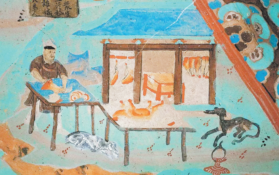 提起西北的美食,就少不了肥美牛羊肉。畜牧業(yè)發(fā)達(dá)的敦煌,這些優(yōu)質(zhì)的肉類(lèi)絕不會(huì)斷貨。莫高窟第61窟、第85窟、第156窟等,都出現(xiàn)了“肉鋪”的場(chǎng)面。
