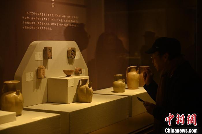 10月27日,在甘肅省蘭州市甘肅省博物館,游人參觀“唐風(fēng)妙彩 —— 長沙窯瓷器精品展”。中新社記者 李亞龍 攝