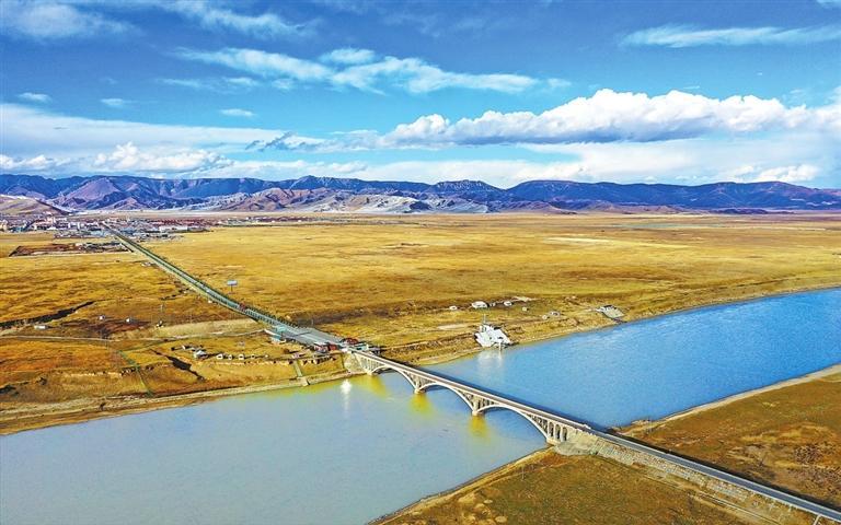 深秋時(shí)節(jié)的瑪曲黃河大橋。新甘肅·甘肅日?qǐng)?bào)記者 田蹊