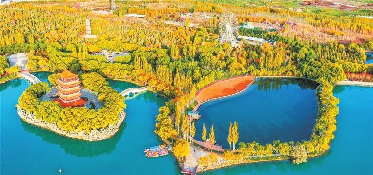 玉門市玉澤湖公園湖水澄澈,絢麗多彩。新甘肅·甘肅日?qǐng)?bào)記者 馮樂凱