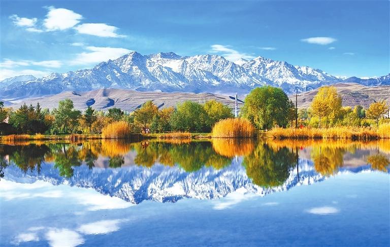 民樂縣西區(qū)公園層林盡染,在雪山的映襯下美不勝收。新甘肅·甘肅日?qǐng)?bào)通訊員 王曉涇