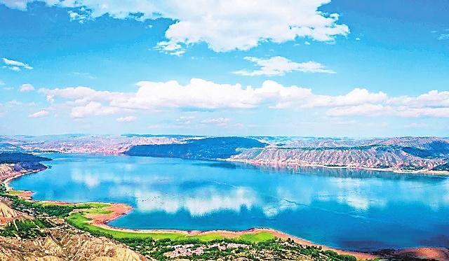 炳靈湖 雄偉的劉家峽大壩阻斷黃河,在永靖境內(nèi)聚成了一座高峽平湖。因這座湖毗鄰炳靈寺石窟和雄奇險(xiǎn)秀的炳靈石林,故稱其為炳靈湖。整個(gè)湖水,在夏秋季呈綠色,就像一塊翡翠鑲嵌在群山之中,散發(fā)著耀眼的光芒,夏秋呈翡翠色,冬春呈藍(lán)色,由于水質(zhì)清澈,群山倒映水中,水天一色,加之湖面廣闊無垠,看上去平靜如海。但每當(dāng)劉家峽水庫泄洪的時(shí)候,磅礴的氣勢(shì)猶如蛟龍出水,翻江倒海,氣沖云天。