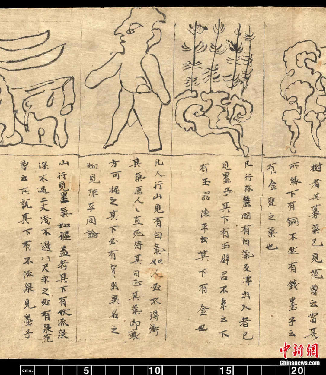 《云氣占》包括26幅不同形狀的云氣,圖下80行文字。有趣的是,根據(jù)第43行中提到“臣淳風(fēng)言”,可推測這件文獻應(yīng)寫于唐貞觀年間,它的母本可能是唐初著名的天文星占家李淳風(fēng)給唐太宗李世民的一個進呈本。