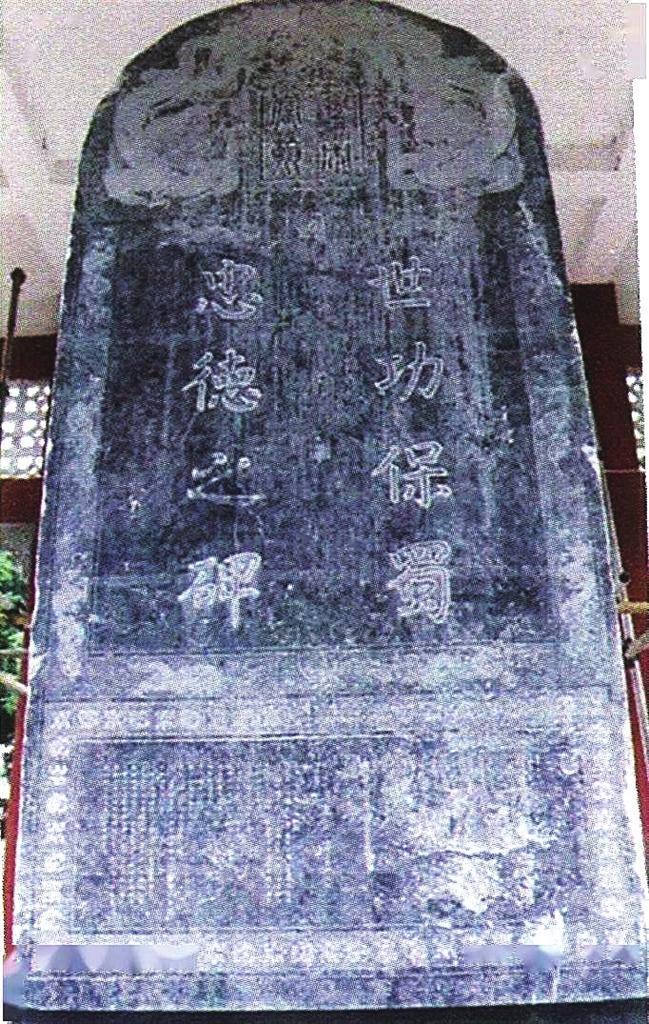 碑陽額刻二龍圖,篆“皇帝宸翰”,字徑0.22米,碑身刻宋寧宗書“世功保蜀忠德之碑”八字,楷書豎行2行,行間刊有篆書“敕令寶璽”和楷書“修政殿書”八個小字,四周環(huán)刻八龍騰云圖。碑文刻吳挺之子吳曦自記《感恩表記》,碑文楷書計8461字,內(nèi)容記載吳氏三代抗金保蜀的功績。