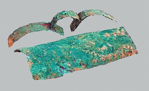 冶金業(yè):辛店文化遺址發(fā)現(xiàn)了一定數(shù)量的早期青銅制品。其中在蓮花臺遺址瓦渣咀發(fā)現(xiàn)青銅刀2件、錐2件、扣3件。其中一件青銅刀刀身扁薄,凹背弧刃,長殘4.5厘米、寬1.5厘米;青銅錐錐身挺直,橫剖面呈方形,其中一件殘長5.2厘米;青銅扣球面或凸面,扣內(nèi)有脊,脊的橫剖面作圓形或方形,直徑一般在1.4厘米—1.6厘米之間。在黑頭咀發(fā)現(xiàn)1件銅刀和1件銅匕,其中銅刀保存完整,刀身向刃部彎曲,刀尖往上翹,柄部有一凸棱,長15厘米、寬2.7厘米。張家咀遺址發(fā)現(xiàn)1件青銅器殘片,系為銅容器口腹部殘片,侈口,弧壁,口沿厚0.4厘米。青銅矛一件,矛身略呈三角形,前鋒已殘,銎作長方形,殘長3厘米、銎長1.8厘米、寬0.7厘米。發(fā)現(xiàn)銅渣2塊,經(jīng)鑒定確認(rèn)銅渣為冶煉青銅爐內(nèi)壁殘塊,附在冶煉爐內(nèi)的銅渣長6.5厘米、寬3.5厘米、厚1.1厘米。經(jīng)過巖相、光譜分析,銅渣是含有銅、錫、鉛的青銅金屬合金,反映出辛店文化不僅存在青銅器,并且已經(jīng)掌握了冶金技術(shù)。