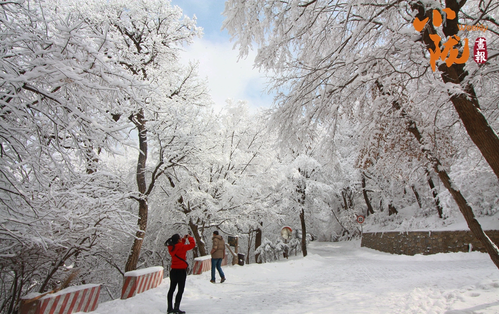 雪花褪去了樹葉的枯黃,整個崆峒山沉浸在一片白茫茫的世界里,景色美妙如畫。