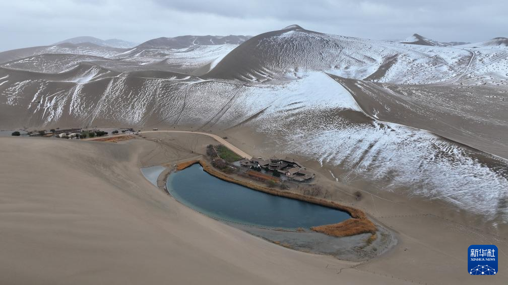 這是11月23日拍攝的敦煌市鳴沙山月牙泉景區(qū)雪景。新華社發(fā)(張曉亮 攝)