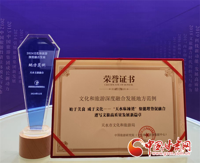 中國甘肅網(wǎng)12月11日訊(西北角·中國甘肅網(wǎng)記者 宋芳科)12月9日,由中國旅游研究院和中國旅游協(xié)會(huì)聯(lián)合主辦的2024中國旅游集團(tuán)化發(fā)展論壇在北京召開。論壇上,天水市《始于美食 成于文化——“天水麻辣燙”聚能增勢促融合 譜寫文旅高質(zhì)量發(fā)展新篇章》范例入選“文化和旅游深度融合發(fā)展地方范例”,成為全國12個(gè)入選地方范例之一。