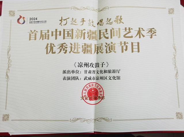 中國甘肅網(wǎng)12月24日訊(西北角·中國甘肅網(wǎng)記者 任磊)近日,文化和旅游部公布了首屆中國新疆民間藝術(shù)季優(yōu)秀進(jìn)疆展演節(jié)目名單,甘肅省《涼州攻鼓子》成功入選。