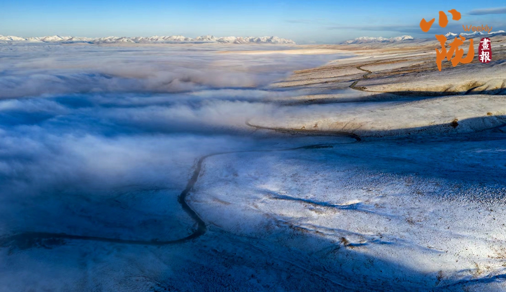 祁連山下,被譽(yù)為“空中草原”的康樂草原段披上了銀裝,皓然一色,如詩(shī)如畫。