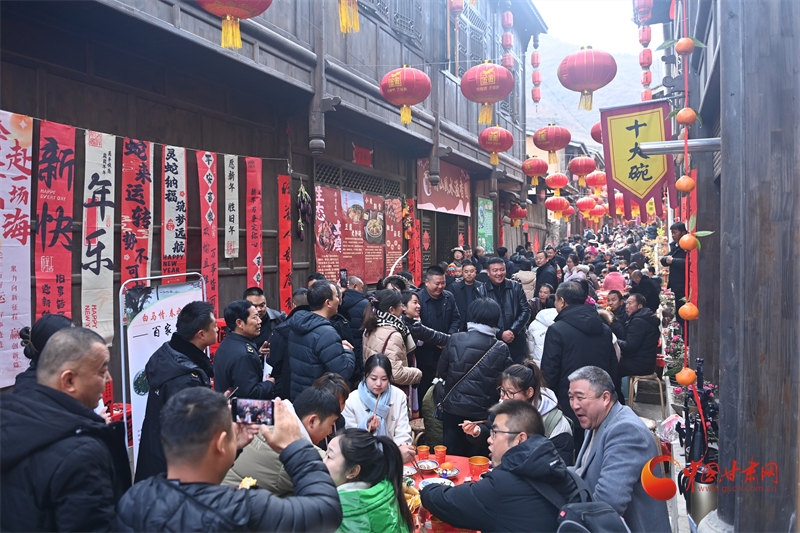 白馬民俗長街宴,美食沿著古巷分布,桌椅板凳綿延幾百米,家家戶戶帶來特色美食,一起與游客分享,帶來團(tuán)圓的問候和特有的民俗體驗,臘肉、臘排都是農(nóng)家食材,十大碗更是當(dāng)?shù)孛朗程厣?/p>