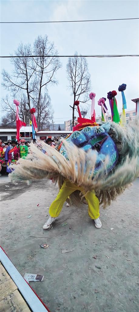春節(jié)期間,人們擇吉日起社火,青毛獅子會在春官的贊詞里,在喧天的鼓號角里,在祈佑新愿的鄉(xiāng)民里威風凜凜地走莊串社。