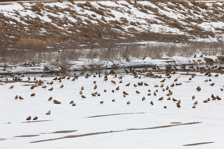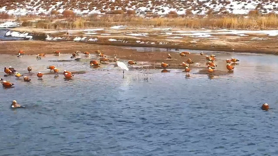 近日,甘肅秦王川國(guó)家濕地公園迎來(lái)候鳥(niǎo)遷徙高峰,國(guó)家二級(jí)保護(hù)動(dòng)物斑頭秋沙鴨、白骨頂,成群結(jié)隊(duì)的赤麻鴨、綠頭鴨以及優(yōu)雅的白鷺構(gòu)成“萬(wàn)羽翔集”的生態(tài)畫(huà)卷,印證濕地生態(tài)系統(tǒng)的顯著改善。