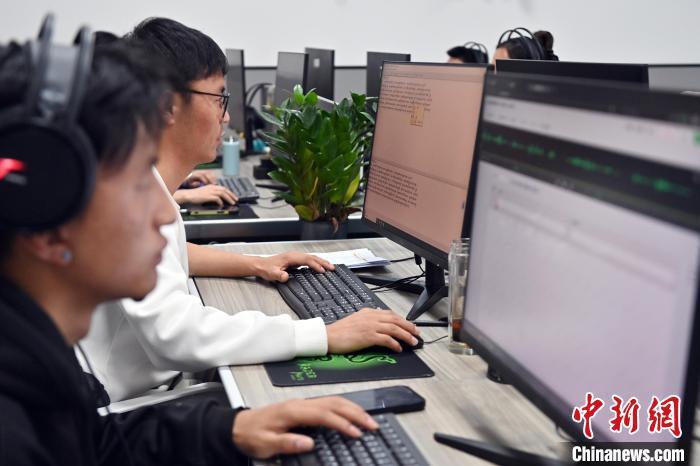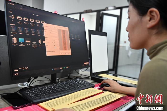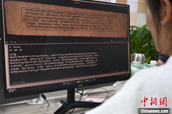 2月27日,在甘肅甘南藏族自治州碌曲縣益西達(dá)吉科技有限公司內(nèi),工作人員正在進(jìn)行藏文古籍?dāng)?shù)字化相關(guān)工作。該公司主要從事民族古籍?dāng)?shù)字化建設(shè)和古籍文獻(xiàn)數(shù)據(jù)庫(kù)建設(shè),自2019年以來(lái),承擔(dān)西藏、四川、甘肅等省區(qū)的藏文古籍?dāng)?shù)字化項(xiàng)目。圖為工作人員用該公司研發(fā)的藏文信息處理系統(tǒng)對(duì)古籍?dāng)?shù)字化內(nèi)容進(jìn)行檢查。中新社記者 九美旦增 攝