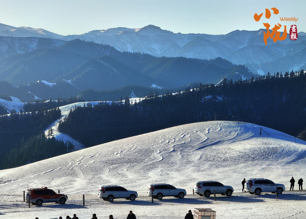 湛藍的天空下,山巒層層疊疊,銀裝素裹,閃爍著耀眼的光芒。