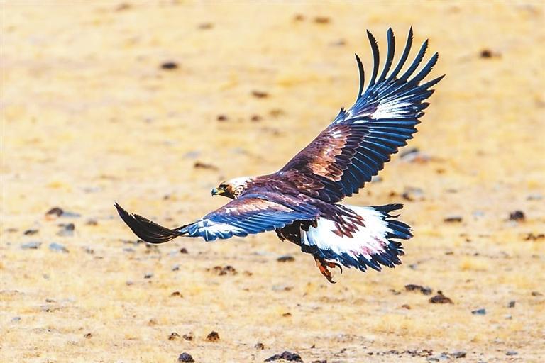 金雕以其卓越的捕獵技巧和優(yōu)雅的飛行姿態(tài)而聞名,主要棲息于高山草原、森林及河谷地帶。在祁連山遼闊的草原之上,金雕展開它那寬闊且有力的雙翅,在藍天之中肆意翱翔。陽光傾灑下來,深褐色的羽毛閃爍著如同金屬般耀眼的光澤,猶如披上了一件堅不可摧的鎧甲,威風(fēng)凜凜。它那犀利的眼神,仿佛能夠穿透重重迷霧,洞察這片廣袤土地上的每一個細(xì)微變化,盡顯王者風(fēng)范。它身姿雄偉而威嚴(yán),宛如一位至高無上的王者,向整個世界展示著它那不容小覷的力量與威嚴(yán),默默地守護著這片廣袤無垠的草原天地。