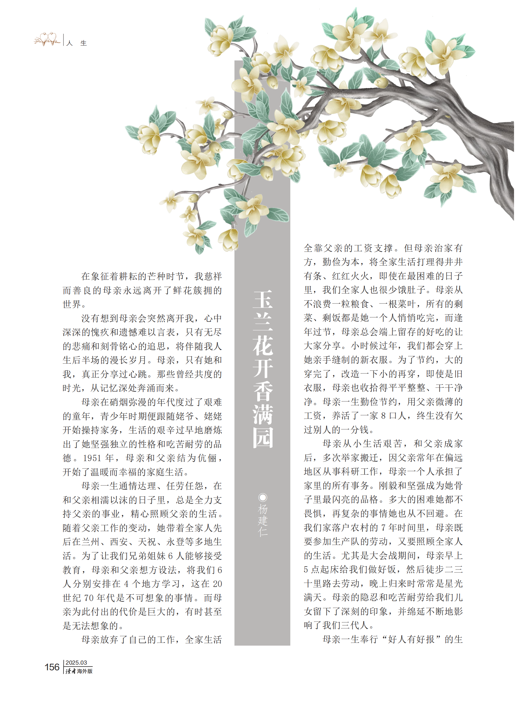 《讀者》(海外版)期刊發(fā)表?xiàng)罱ㄈ饰恼隆队裉m花開香滿園》