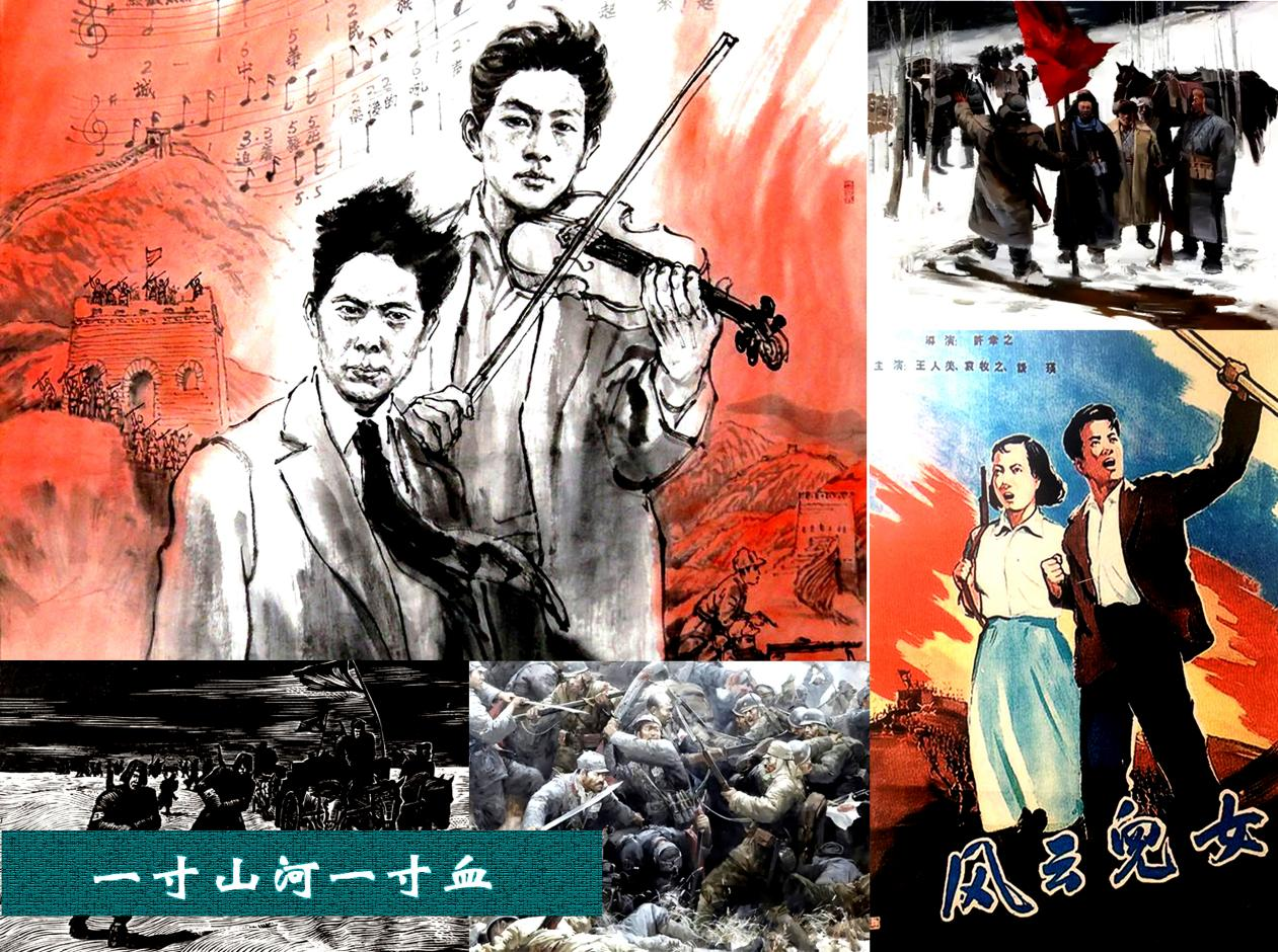 筆者在相關(guān)閱讀中接觸到許多《義勇軍進(jìn)行曲》創(chuàng)作同期的歌曲、誓詞、通電等史料。見(jiàn)到了《義勇軍誓詞歌》《血盟救國(guó)軍軍歌》等一些堪稱《義勇軍進(jìn)行曲》雛形的藍(lán)本。當(dāng)讀到其中“起來(lái)!起來(lái)!不愿當(dāng)亡國(guó)奴的人!……用我們身體筑起長(zhǎng)城。……前進(jìn)?。∏斑M(jìn)!向前進(jìn)!殺!殺!殺!”;又如“起來(lái)!不愿當(dāng)亡國(guó)奴的人們,用我們的血肉喚起全國(guó)民眾……中華民族到了最危險(xiǎn)的時(shí)候,起來(lái)!起來(lái)!”等歌詞時(shí),胸中激情難抑。這些同仇敵愾的時(shí)代強(qiáng)音最終集成于田漢、聶耳一九三五年四月完成的電影《風(fēng)云兒女》主題曲《義勇軍進(jìn)行曲》。當(dāng)年五月,隨著電影公映,《義勇軍進(jìn)行曲》迅速傳遍中華大地,成為鼓舞全國(guó)人民抵抗日本侵略的戰(zhàn)斗號(hào)角,后來(lái)又被確定為新中國(guó)的國(guó)歌并寫入憲法。筆者撫今追昔,萬(wàn)千感慨,思如泉涌,寫就兩首《七律》,志念《義勇軍進(jìn)行曲》九十周年。