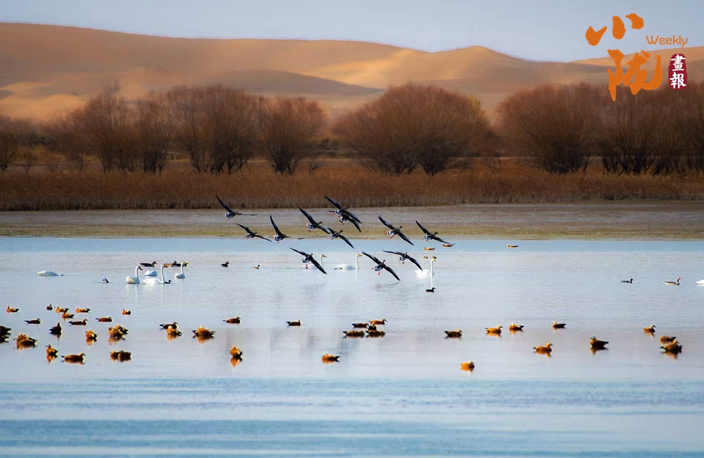 鳥類是濕地生態(tài)系統(tǒng)中最活躍、最引人注目的組成部分,也是監(jiān)測(cè)濕地生態(tài)狀況變化的一項(xiàng)客觀生物指標(biāo)。近年來,張掖國(guó)家濕地公園生態(tài)得到持續(xù)改善,使得濕地動(dòng)物明顯增加,黑鸛、大天鵝、熊貓鴨、大白鷺等都是濕地公園的???,構(gòu)成祁連山下田野村莊一道亮麗風(fēng)景。
