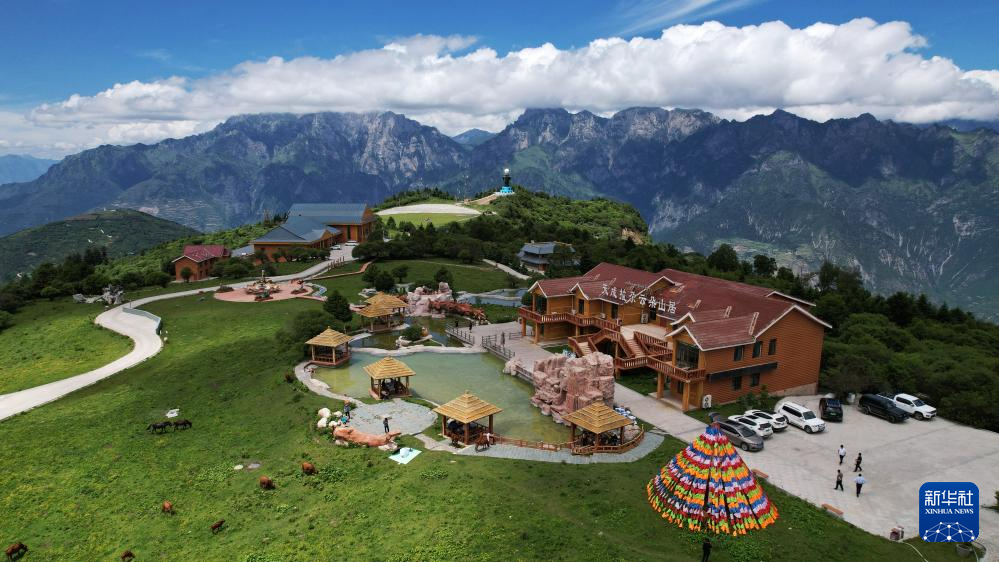這是7月12日拍攝的舟曲拉尕山一處特色民宿(無人機照片)。新華社記者 陳斌 攝