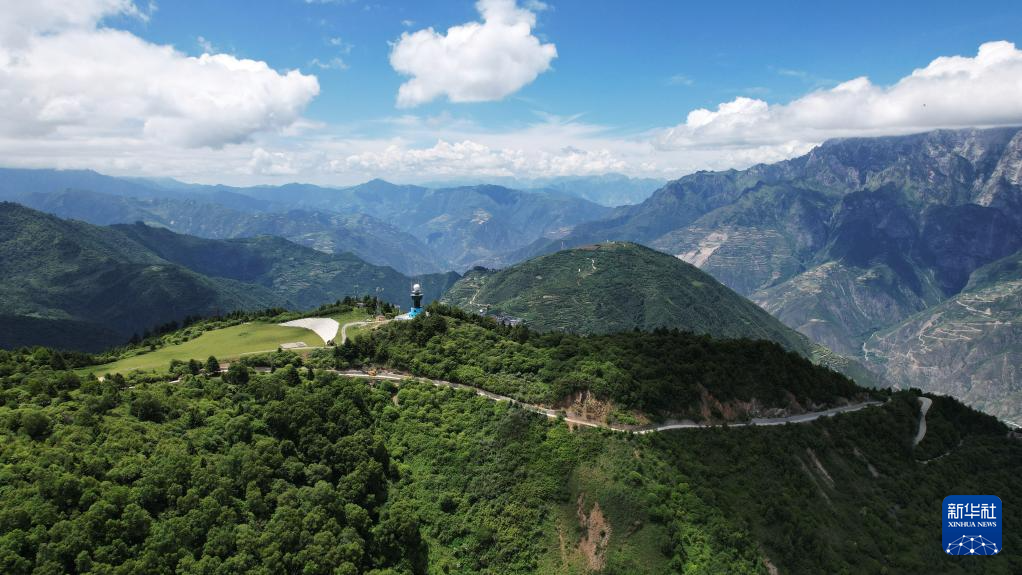 這是7月12日拍攝的舟曲“簪花之路”風景廊道沿線風光(無人機照片)。新華社記者 陳斌 攝