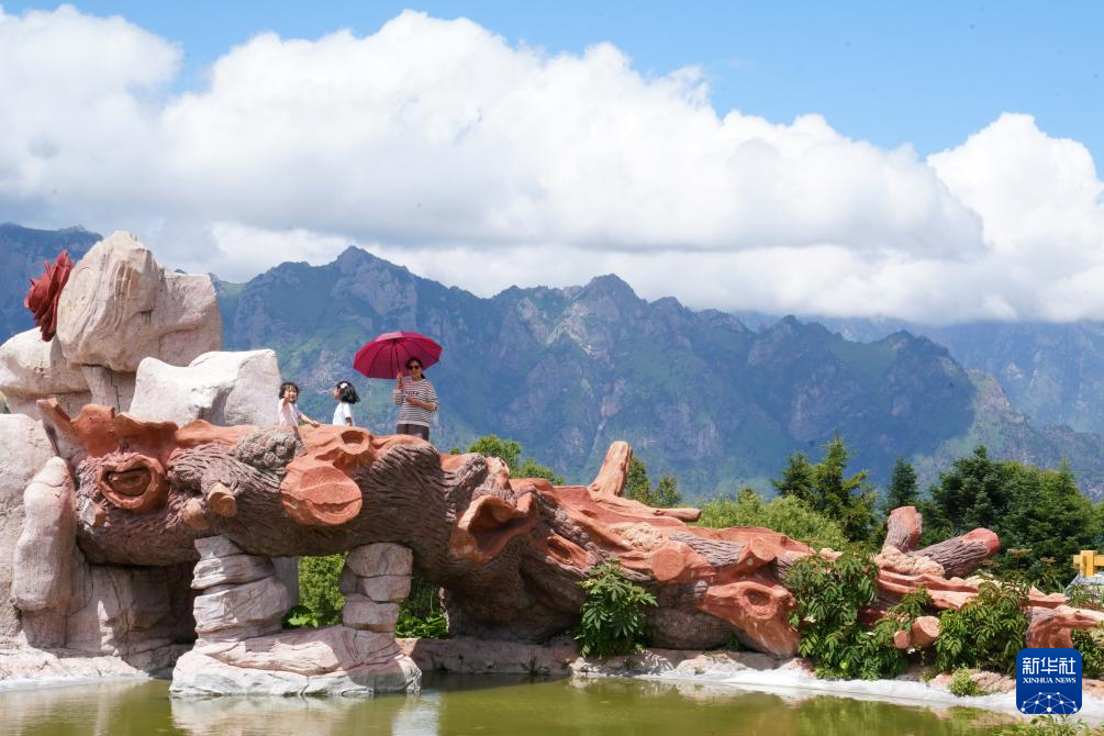 游客在舟曲拉尕山上合影留念(7月12日攝)。新華社記者 馬寧 攝