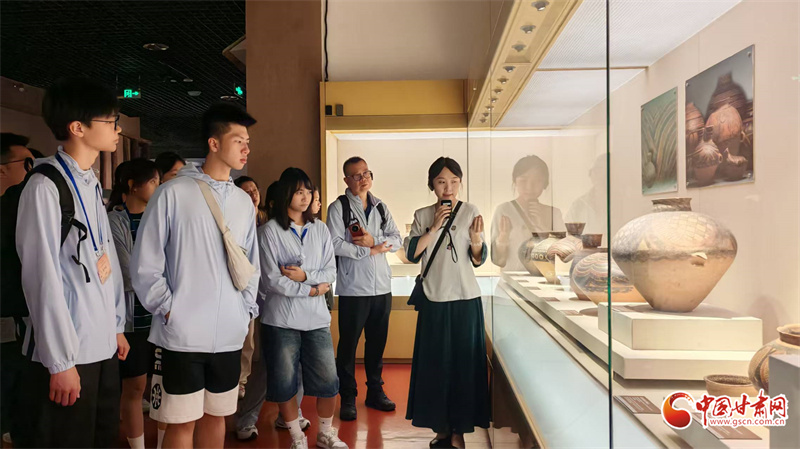 7月24日上午,“同心筑夢”2025年澳門青少年甘肅行來到甘肅省博物館,來自澳門培正中學(xué)等7所中學(xué)的30名師生依次參觀了“甘肅古生物化石”“甘肅彩陶”“絲綢之路”三大常設(shè)展覽,在“穿越時空”的沉浸式體驗中感受黃河文化的厚重與絲路精神的多彩,完成了一次跨越億萬年、縱覽文明史的深度研學(xué)之旅。
