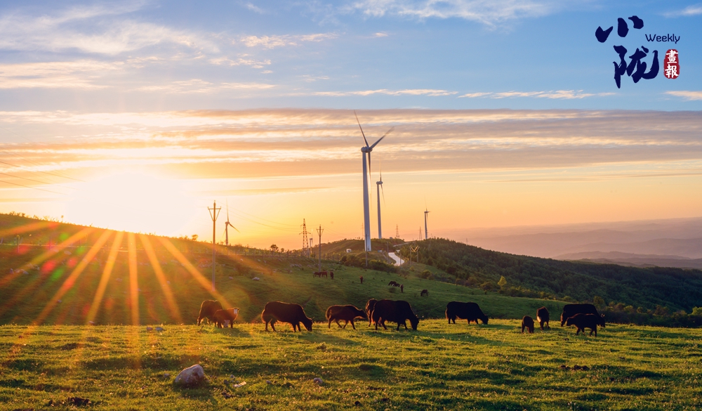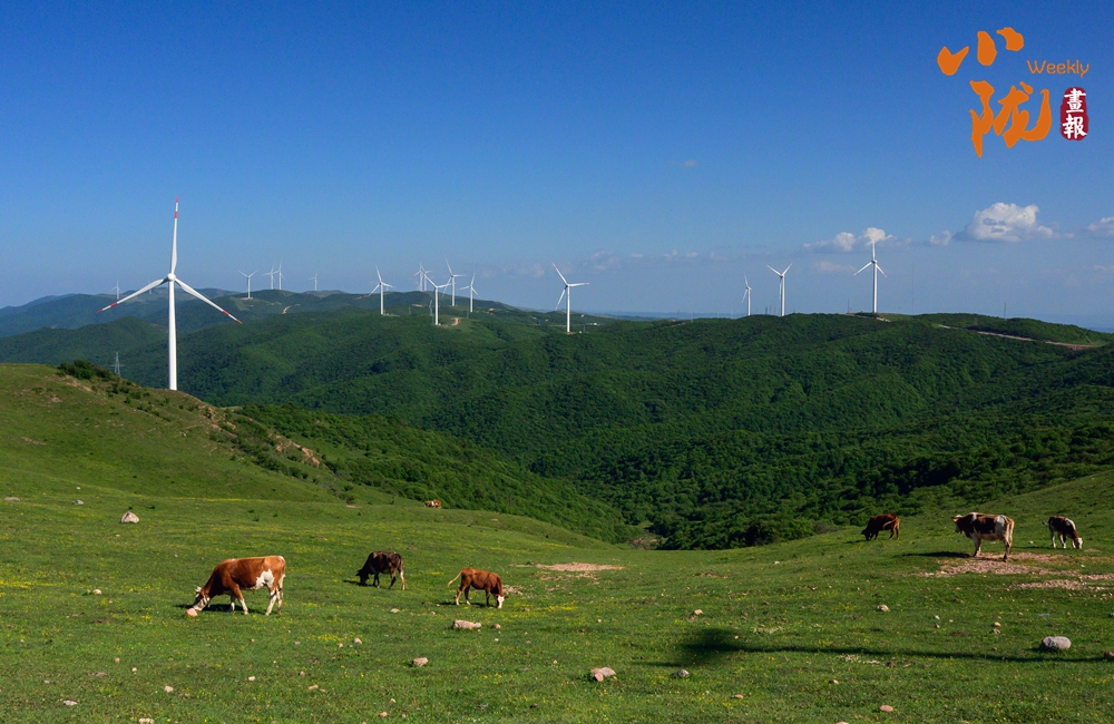廣闊的牧場,一望無垠。綠油油的牧草覆蓋整片天地,宛如一片綠色的海洋。草原上游走的牛羊,與天空浮云、遠景的群山、矗立的風(fēng)力發(fā)電機交相輝映,極目遠望、蔚為壯觀,構(gòu)成關(guān)山古道一道靚麗風(fēng)景線。