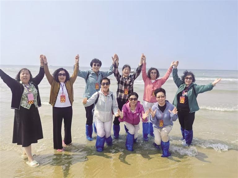 老年旅行團(tuán)在海邊游玩