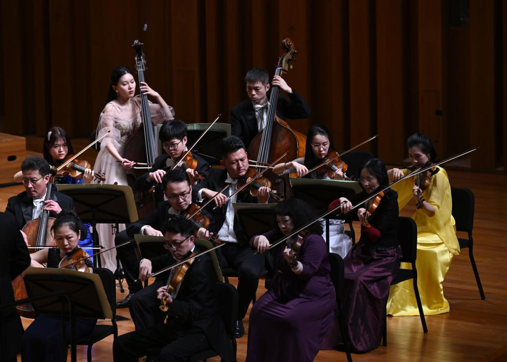 1月15日拍攝的音樂(lè)會(huì)現(xiàn)場(chǎng)。當(dāng)日,作為中國(guó)交響樂(lè)團(tuán)2022音樂(lè)季開(kāi)幕演出,“歡樂(lè)頌”新春音樂(lè)會(huì)在北京國(guó)家大劇院舉行。新華社記者金良快攝