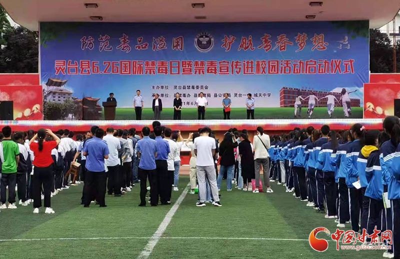 中國甘肅網(wǎng)6月25日訊(本網(wǎng)記者 李紅軍 通訊員 李青)為深入推進(jìn)毒品預(yù)防宣傳教育,全面普及禁毒知識,不斷增強人民群眾特別是廣大青少年學(xué)生的禁毒防毒意識,營造全民禁毒濃厚氛圍,6月25日,平?jīng)鍪徐`臺縣禁毒委在靈臺一中操場舉辦了全民禁毒宣傳月暨禁毒宣傳進(jìn)校園啟動儀式。