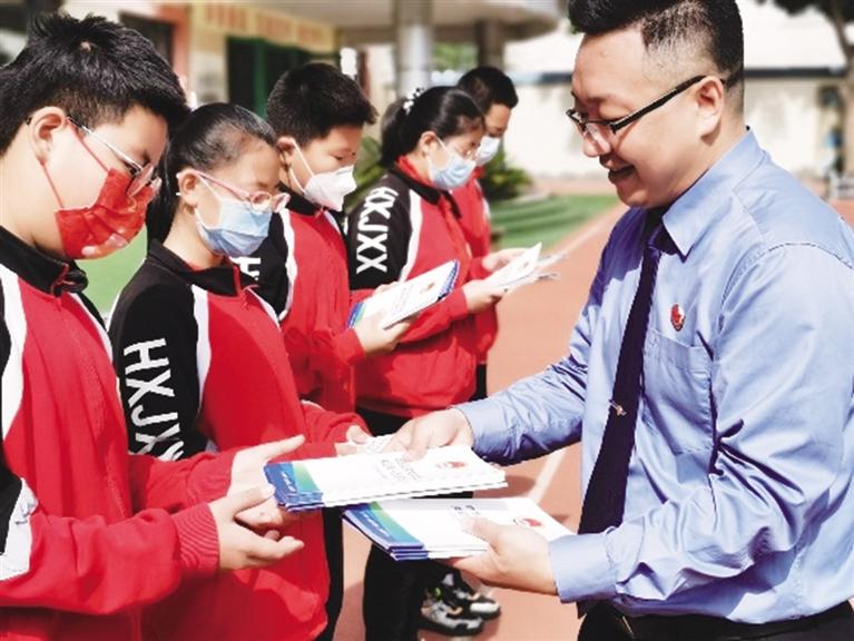 5月19日,七里河區(qū)人民檢察院和火星街小學聯(lián)合舉辦了“喜迎二十大 法治進校園 普法共成長”教育活動。檢察官現(xiàn)場做了“校園欺凌與校外安全”專題講座,為同學們上了一堂生動的法治教育課。同時,檢察官還向學生代表贈送了法律宣傳手冊。