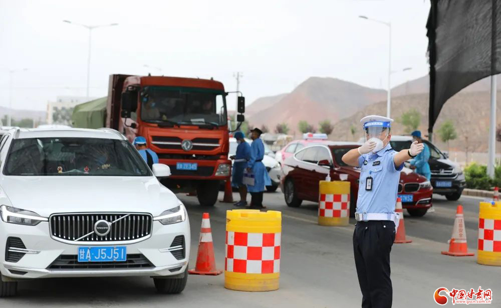 韓家河治安檢查站,執(zhí)勤民輔警協(xié)同配合責(zé)任成員單位工作人員嚴守蘭州南大門,做好跨地區(qū)出行人員勸導(dǎo),全力筑牢“外防輸入 內(nèi)防輸出”安全屏障。楊 釗/攝