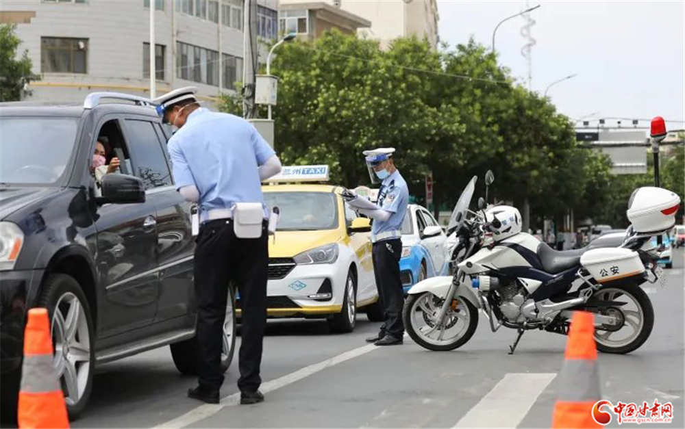 蘭州公安交警嚴格按照疫主城四區(qū)情防控措施要求,對非必要入城車輛進行查驗勸返。楊 釗/攝
