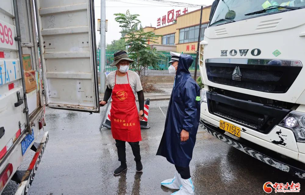 皋蘭公安民警在雨中堅守疫情防控卡口點,24小時不間斷對出入車輛和人員進行檢查。皋蘭縣局 黃曉琴/攝