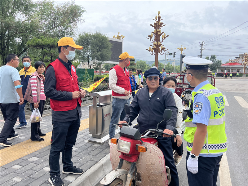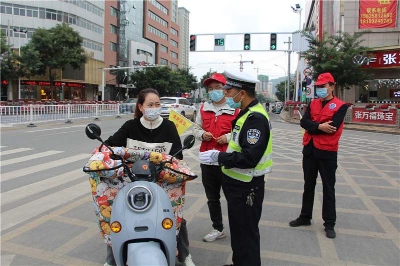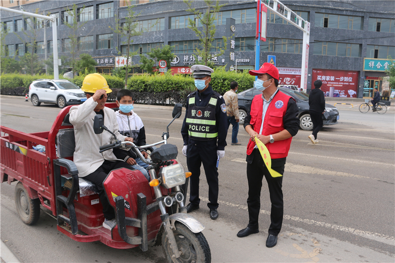 9月28日上午,參加“駕駛?cè)藢W(xué)習(xí)教育體驗(yàn)”活動(dòng)的記滿分駕駛?cè)苏诟拭C定西岷縣小南門(mén)十字路口對(duì)不文明交通行為認(rèn)真的進(jìn)行著勸導(dǎo)。