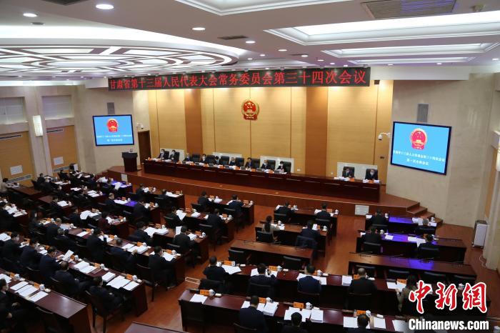 11月22至25日,甘肅省第十三屆人大常委會(huì)第三十四次會(huì)議在蘭州召開(kāi)。圖為會(huì)議開(kāi)幕式現(xiàn)場(chǎng)。 瞿杜熙昕 攝