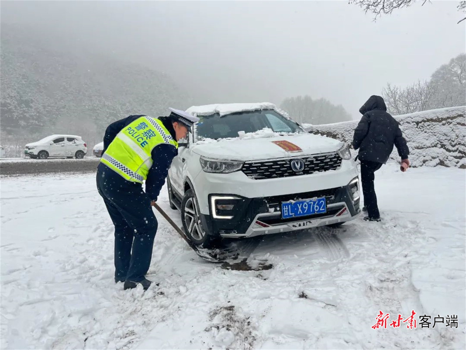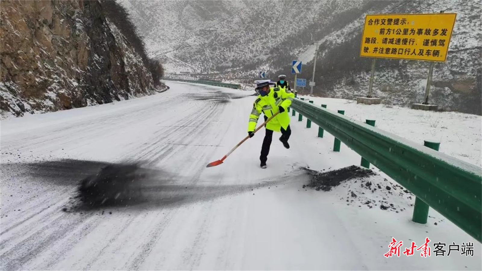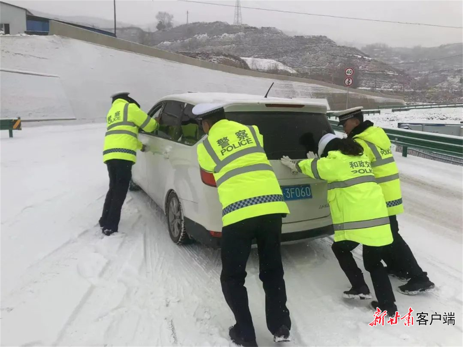 新甘肅客戶端訊(新甘肅·每日甘肅網(wǎng)記者 萬及敏)2月8日上午,甘肅多地出現(xiàn)降雪天氣,部分道路出現(xiàn)積雪結冰現(xiàn)象。為最大限度保障群眾出行安全,預防和減少道路交通事故的發(fā)生,全省公安機關1.2萬公安民輔警奮戰(zhàn)一線,加大重點路段巡邏管控力度,采取預警提示、除冰、引導車輛減速慢行、封閉道路、幫助群眾推車等措施,嚴防交通事故發(fā)生,為群眾的平安出行保駕護航。