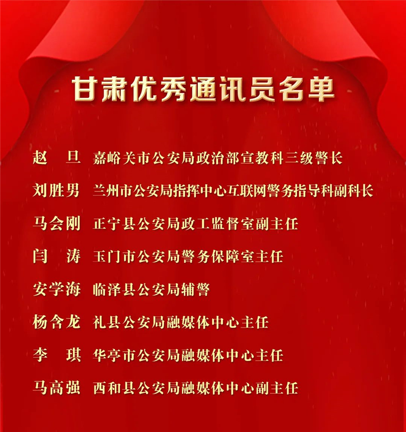 甘肅8名民輔警獲評人民公安報(bào)“2022年度優(yōu)秀通訊員”