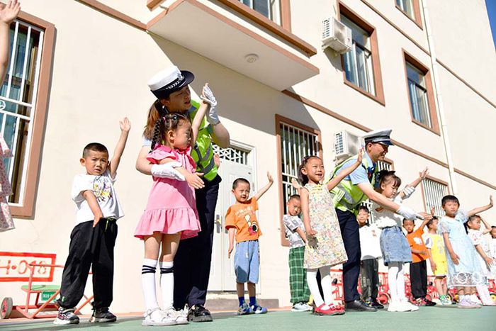 6月13日,臨澤縣公安局交警大隊法治宣傳民警走進濱河幼兒園,通過現(xiàn)場授課、有獎競答、認交通指示牌等寓教于樂的方式向幼兒們普及了道路交通標識等常識,提高幼兒們的交通安全意識。新甘肅·甘肅法制報通訊員 安學(xué)海 攝