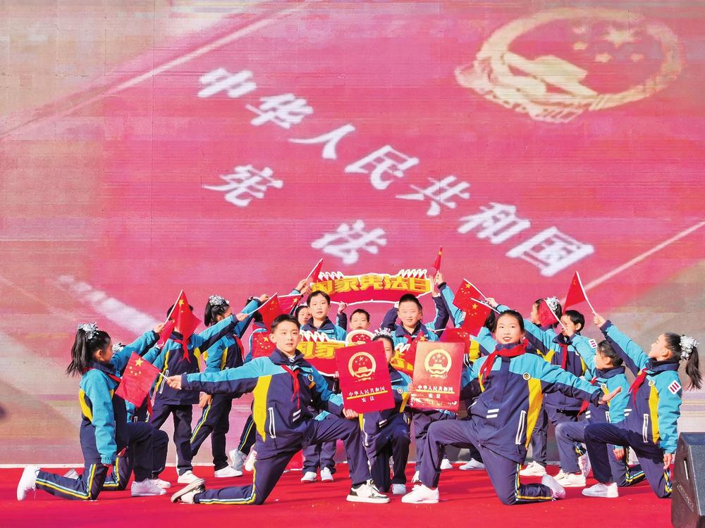 張掖路小學(xué)學(xué)生演出情景歌舞《憲法伴我們成長》。12月4日,蘭州市在市民廣場舉行2024年“12·4”國家憲法日暨憲法宣傳周活動。 新甘肅·甘肅法治報(bào)記者楊丹攝