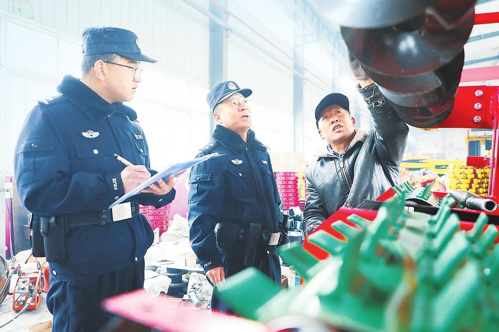 民警檢查農機安全情況。2月20日,定西市公安局安定分局民輔警深入農機制造、銷售網(wǎng)點,開展農機安全隱患排查治理工作,助力春耕生產。新甘肅·甘肅法治報通訊員楊永剛攝