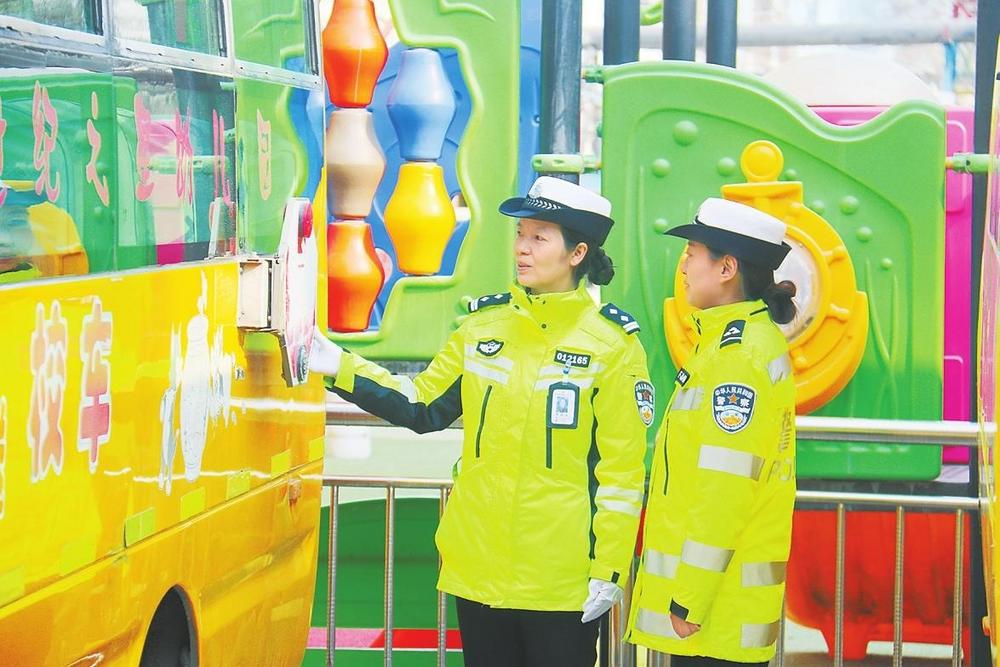 民警在檢查校車安全設(shè)施。2月19日,蘭州市公安局交警支隊七里河大隊民警走進(jìn)七里河區(qū)世紀(jì)之星幼兒園,開展校車啟封安全檢查。 新甘肅·甘肅法治報記者王輝攝