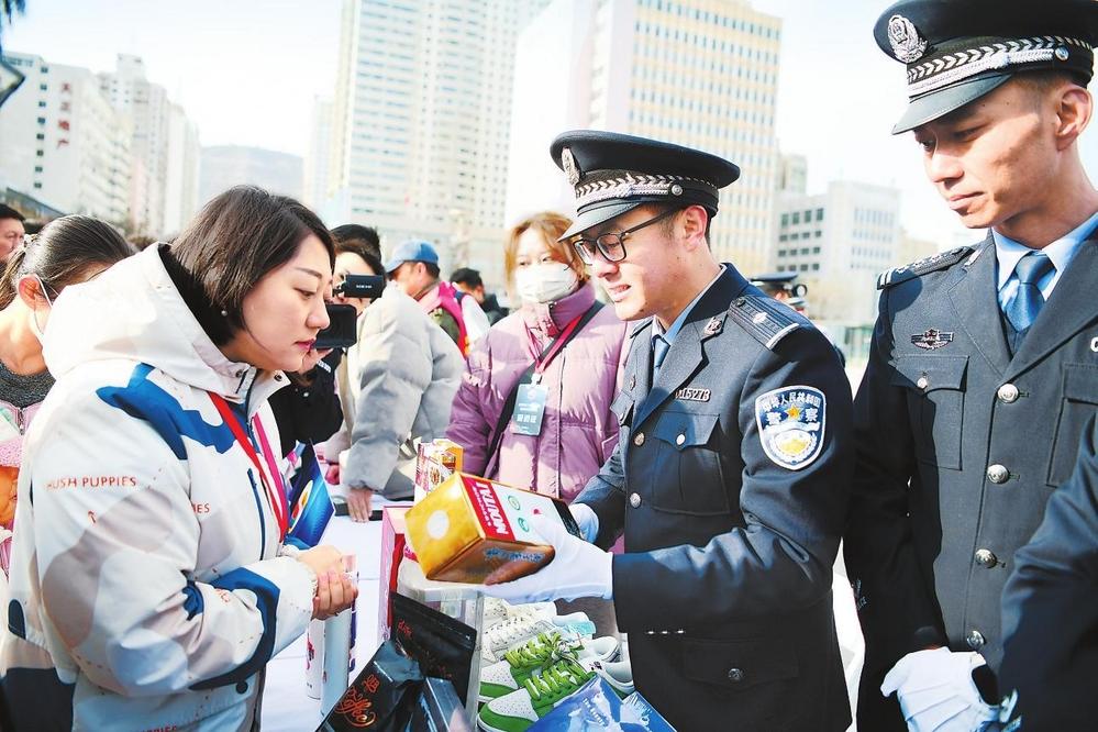 民警向市民普及商品的辨別知識(shí)。新甘肅·甘肅法治報(bào)記者王輝攝