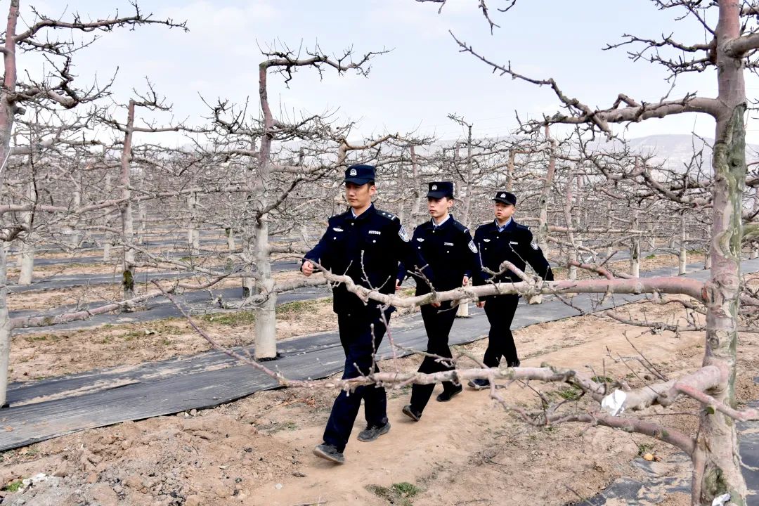 當夕陽給蘋果樹鍍上金邊,結(jié)束巡邏的民警們又聚在派出所研判當天收集的農(nóng)情。在這片被精心呵護的土地上,青綠色的嫩芽正醞釀著金秋的甜蜜,花牛派出所民輔警用腳步丈量果園,用責任護航平安。他們的身影與果農(nóng)們的笑臉交織在一起,構(gòu)成了一幅和諧美好的春耕畫卷。“一年之計在于春,春耕是農(nóng)民一年中最重要的時候,我們多跑跑腿、多操操心,果農(nóng)們就能安心種地、放心收成。”張?zhí)锝苄χf道。陽光下,他們的警徽熠熠生輝,映照出人民警察為人民的初心與擔當,而警民共繪的平安畫卷,早已融入隴原春深處的每一寸生機。
