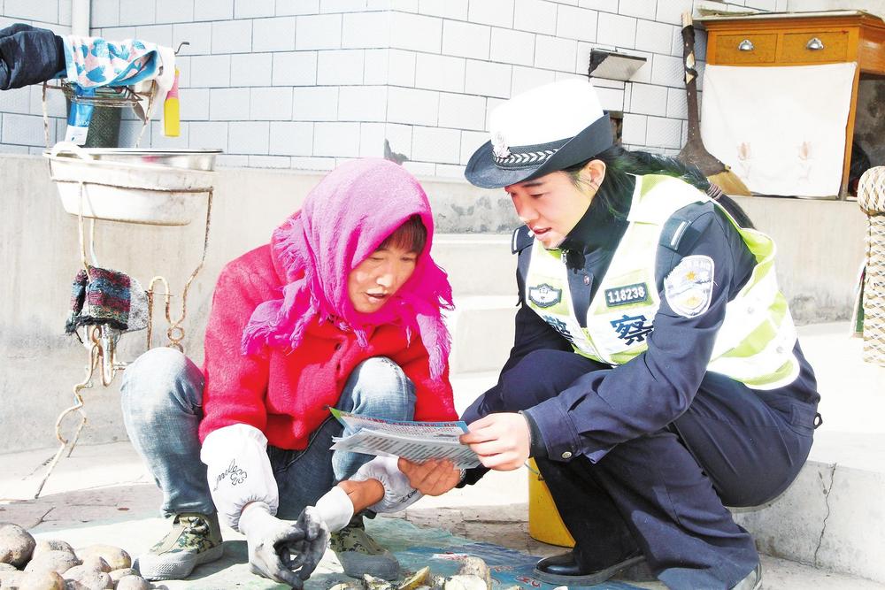 民警向群眾宣傳交通安全知識。3月10日,臨洮縣公安局交警大隊(duì)民警走村入戶,開展交通安全宣傳活動。新甘肅·甘肅法治報(bào)通訊員楊小娟攝