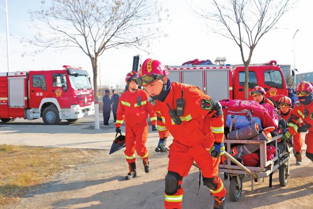 地震救援拉動(dòng)訓(xùn)練中的劉學(xué)法。 蘭州新區(qū)消防救援支隊(duì)供圖