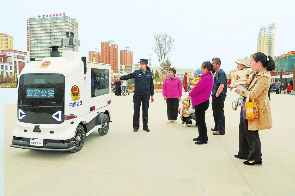 群眾參觀公安智能巡邏車。近日,定西市安定區(qū)許鐵堂廣場(chǎng)上出現(xiàn)一款引人注目的科技產(chǎn)品——智能巡邏車,這是安定公安在現(xiàn)代化警務(wù)建設(shè)中引入的智慧產(chǎn)品,能夠24小時(shí)不間斷工作,引發(fā)群眾關(guān)注。 新甘肅·甘肅法治報(bào)通訊員楊永剛攝