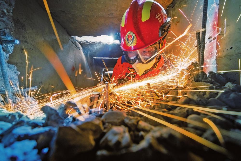 眼看就要取得勝利,余震突然來襲,救援現(xiàn)場可能出現(xiàn)二次坍塌的風(fēng)險(xiǎn)。救援人員迅速組織人員撤離,在確?,F(xiàn)場環(huán)境安全后對風(fēng)險(xiǎn)點(diǎn)進(jìn)行支撐加固處理,再次展開救援。