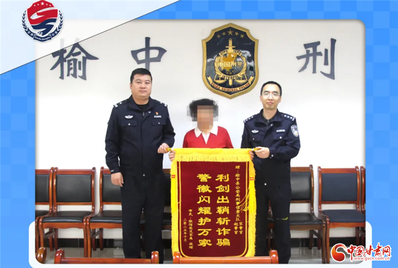 中國甘肅網(wǎng)11月3日訊(西北角·中國甘肅網(wǎng)記者 程?。┙眨m州市的張女士將一面印有“利劍出鞘斬詐騙 警徽閃耀護(hù)萬家”的錦旗,送到了榆中縣公安局刑警大隊(duì)辦案民警手中。